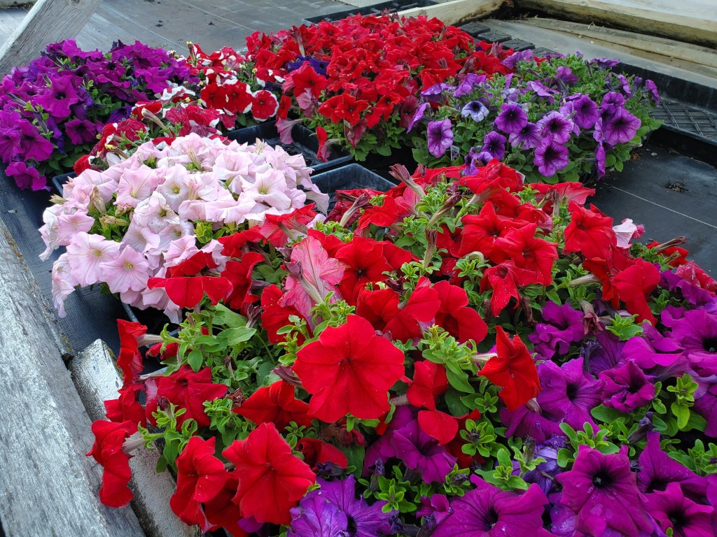 It is the last week this season in the greenhouse to get your flowers, veggie plants, trees and shrubs. There is still many beautiful flowers looking for a home. Come in and see what sales we are having.